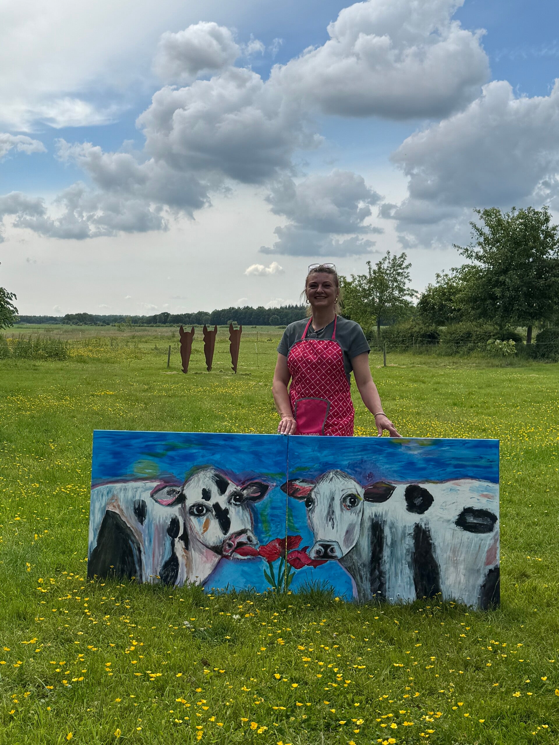 Binnen in mijn atelier, maar bij mooi weer schilderen we buiten.